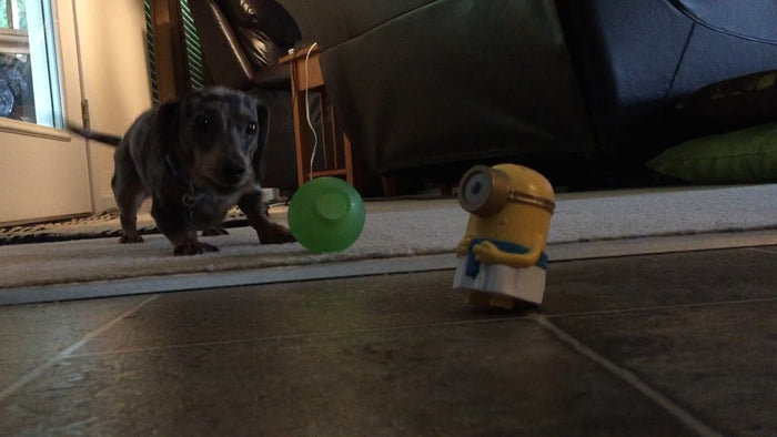 Adorable Dachshund Gets Intimidated As Talking Happy Meal Minion Toy Argues With Her!