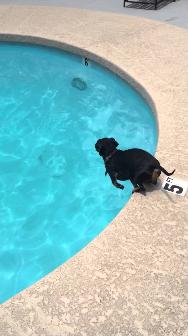So What If The Toy Is Inside The Pool? This Is How Dexter The Dachshund Retrieves It! #SwimMaster!