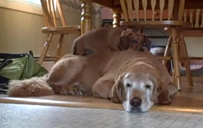 Adorable Dachshund Climbs Up On His Best Friend For A Midday Nap!