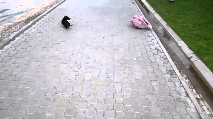 Adorable Dachshund Gets Intimidated By A Plastic Bag Then Surrenders! #LeaveMeAloneBag!