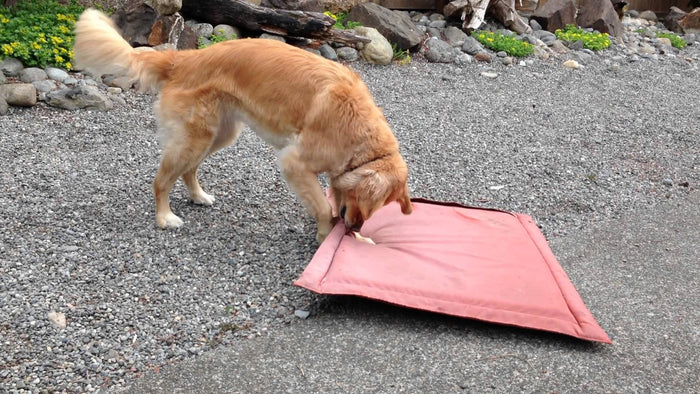 Emma The Golden Retriever Only Needs Her Bed Or Blanket and A Ball And She's Happy!