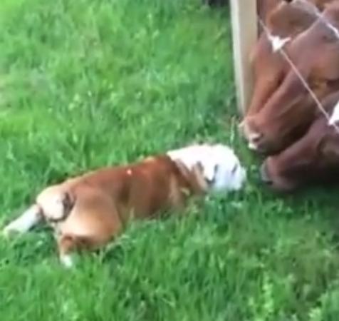English Bulldog Meets Cows For The First Time And His Reaction Is Priceless!