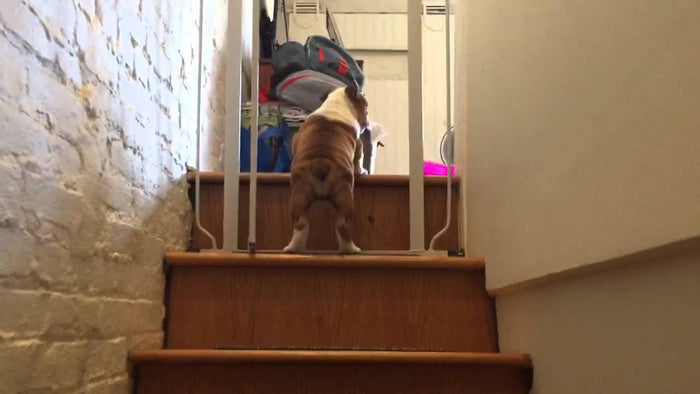 11 Month Old English Bulldog Masters The Art Of Stair Climbing! #IBelieveICanClimb!