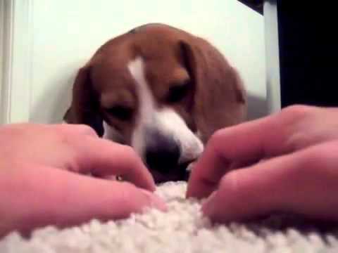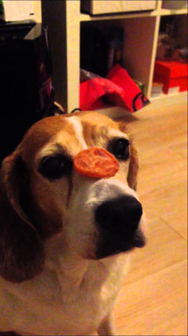 This Beagle Is Learning Self Control By Placing A Delicious Cookie On Her Muzzle! Look At Those Eyes!