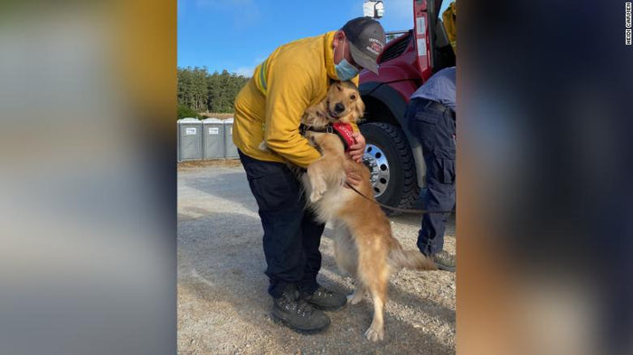 Firefighters Battling Fires In Northern California Get Comfort From Therapy Dog