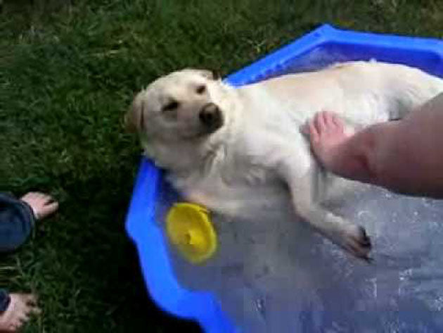 Labrador Enjoys Outdoor Bath Time In Her Own Miniature Pool!