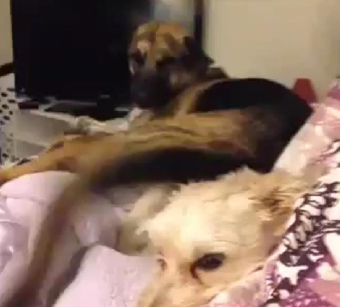 This German Shepherd Over Enthusiastic Tail Is Causing Problems For His Little Brother!