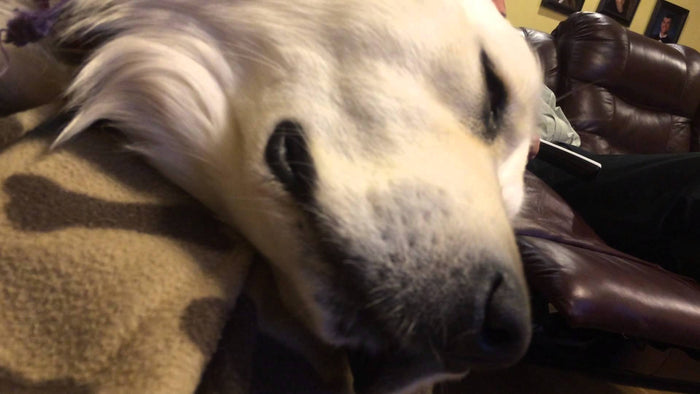 This Golden Retriever Is Asleep. Is She Trying To Sneeze Or Is She Dreaming?! #YouDecide!
