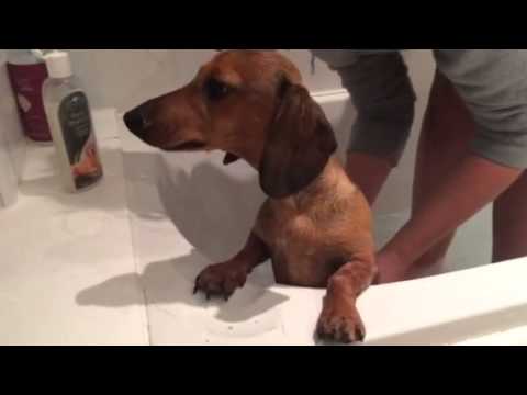 Errol The Dachshund Might Be Brave Like A Lion, But Not Inside The Bathtub! #BathTimeTerror!