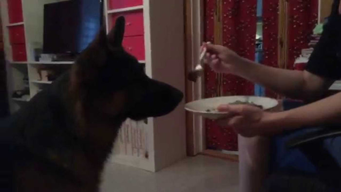 Take A Look At Nixon, The German Shepherd Eating His Food...With A Fork?! #PupEvolution!
