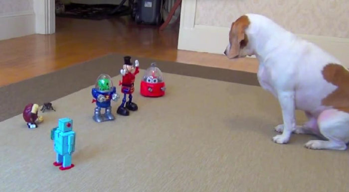 Watch How This Adorable Beagle Is Reacting To Army Of Robots!