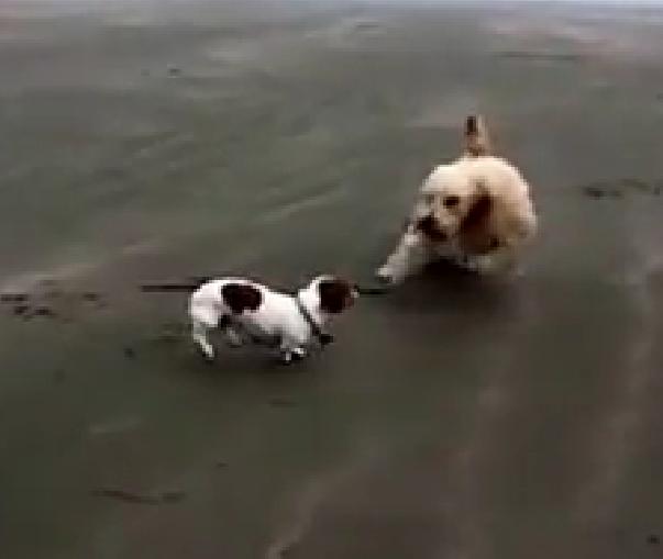 This Gorgeous Dachshund Is Having A Size Problem When It Comes To Play Time On The Beach!
