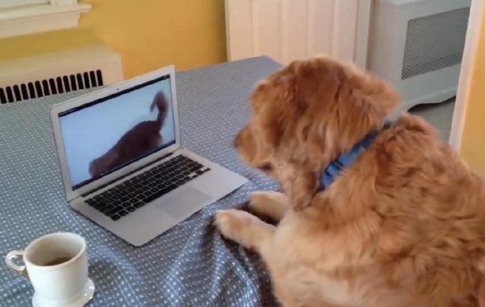 Watch How This Adorable Golden Retriever Reacts To A Video Of Golden Retriever Playing With A Squeaky Toy