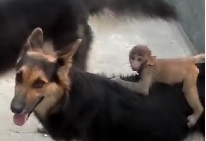 Cuteness Overload! Gorgeous Monkey Rides On German Shepherd's Back (VIDEO)!