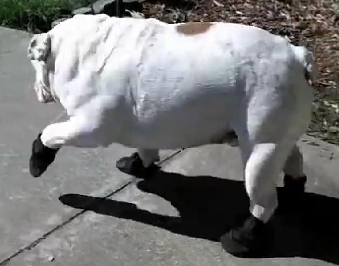 This English Bulldog Walking In His New Boots Is Extremely Cute!