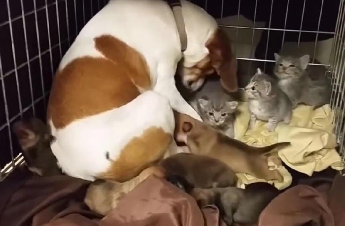 Three Gorgeous Kittens Are Adopted By A Mother Beagle!