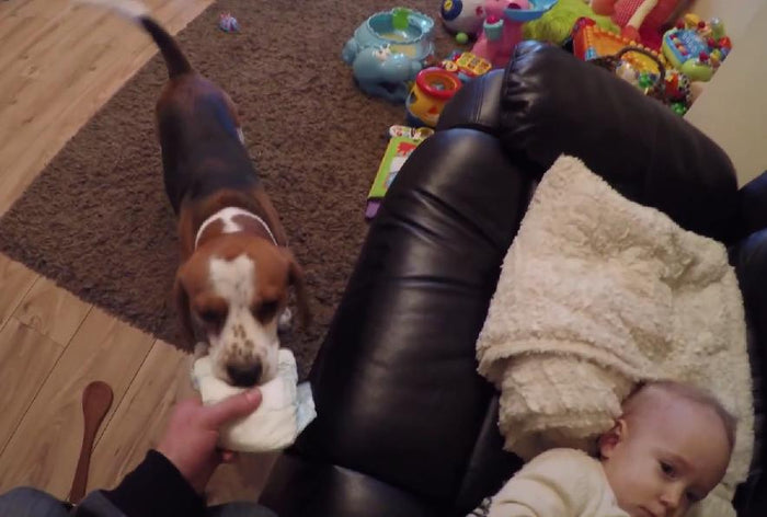 This Is Amazing! Beagle Helps His Dad With Changing The Baby Diapers!