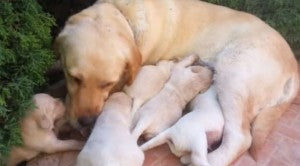 Six Chubby Lab/Golden Puppies Enjoy Their Dinner!