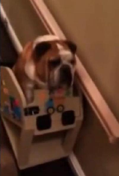 This English Bulldog Is Enjoying The Luxury Of Having His Own Custom Stair Lift