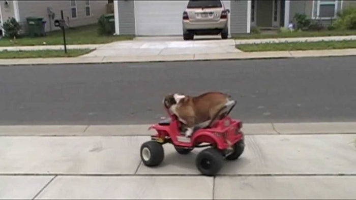 English Bulldog Is Driving A Power Wheels??