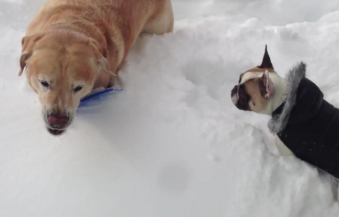 Labrador Helping His Little Friend Retrieve A Toy In The Snow Is Just Remarkable!