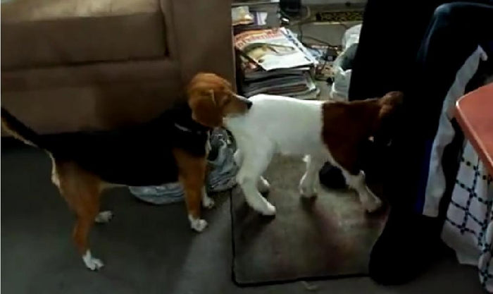 This Beagle Is Having The Most Compulsive Reaction To His New Baby Goat Buddy!