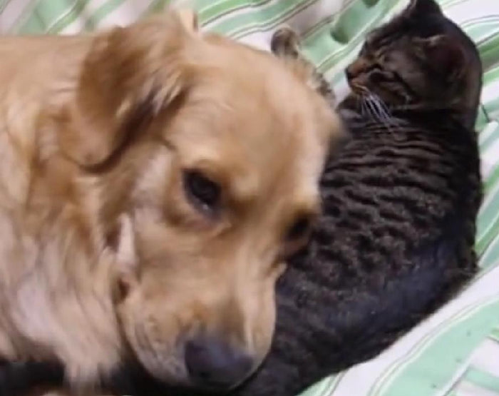 This Golden Retriever Is Having The Best Nap Of His Life While Sleeping On A….Cat???