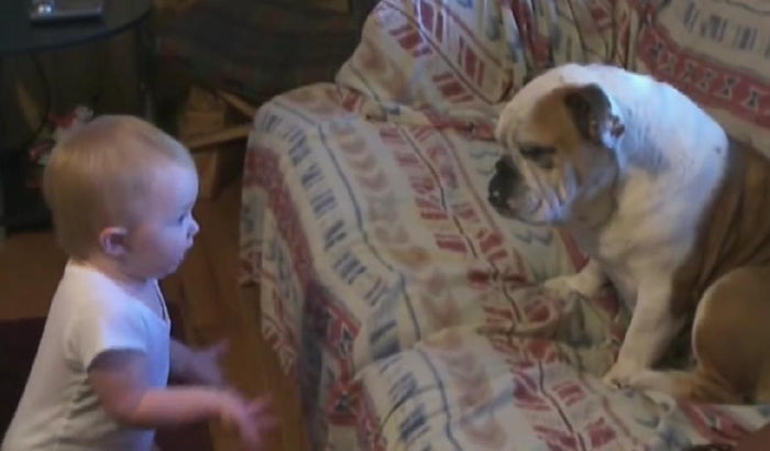 In This Hilarious Dog Video This Cute Baby Makes His Case With The English Bulldog!