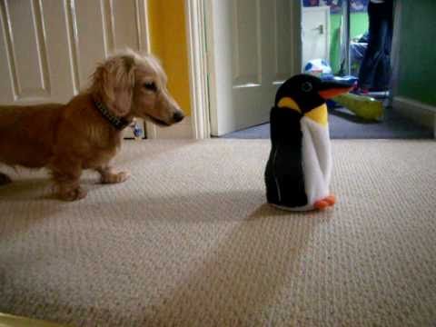 Dachshund Meets A Mechanical Penguin! Reaction Leaves Everyone In Laughter!
