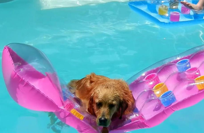 Adorable Golden Retriever Steals His Owner’s Pool Float!