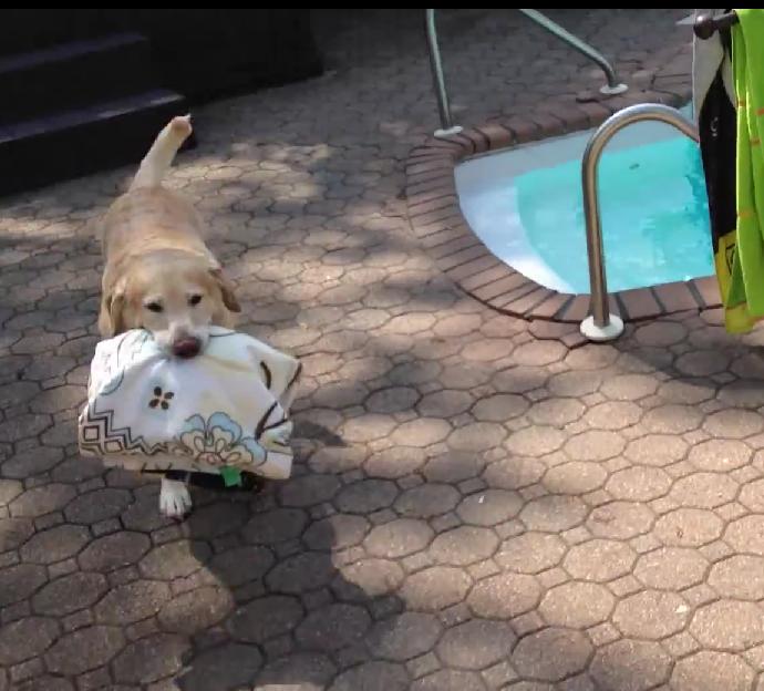Just Like A Professional Swimmer, This Labrador Gets Pool Towel From Closet, Brings Towel to Pool And Jumps In The Pool!