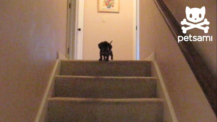 Scarlet, A Sweet Little Dachshund Pup Was Afraid To Climb Down The Stairs, Then Came Her Teacher!