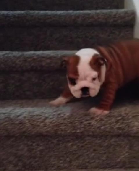 This English Bulldog Puppy Trying To Conquer The Stairs Is Making Everybody Giggle!