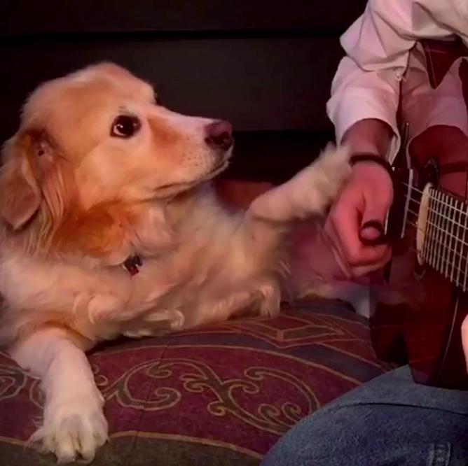 Golden Retriever Holds His Owner's Hand While Listening To The Sam Smith - Stay With Me Song!