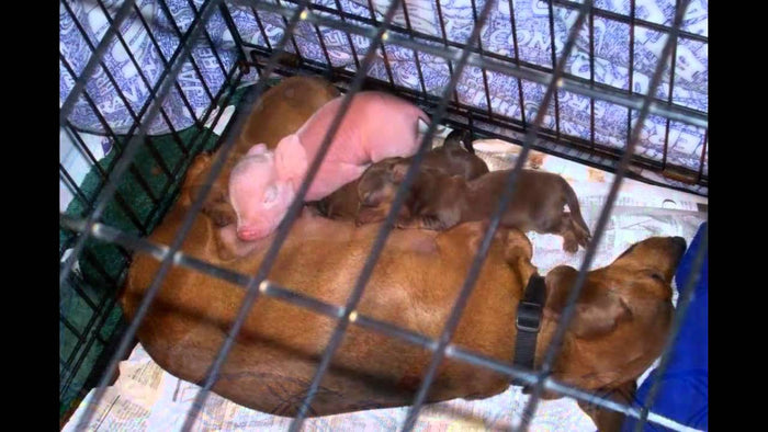 Affectionate Dachshund Mom Adopts Orphaned Piglet And Loves It As Her Own!