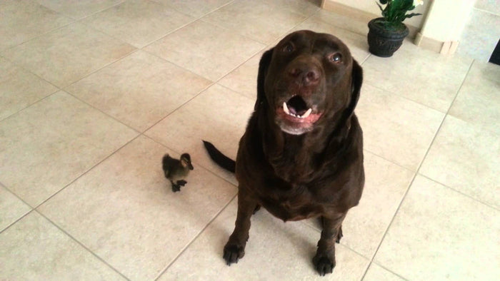 Identity Crisis! Cute Baby Duckling Thinks Labrador Is His Mommy! This Is Hilarious!