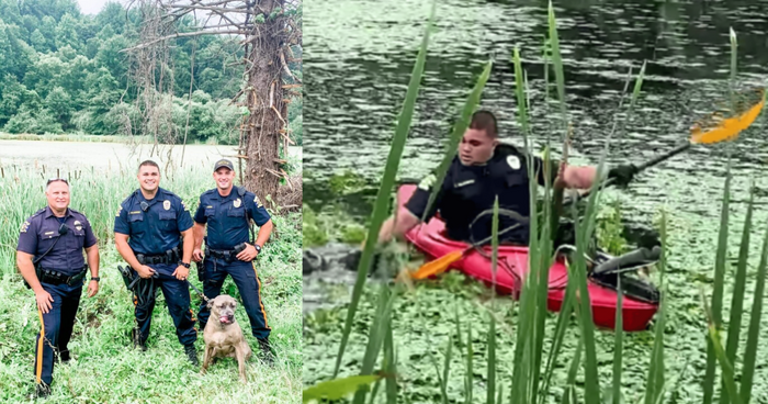 Hero Cop Uses Kayak To Rescue Dog From Muddy Pond