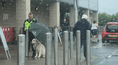 Security Guard Does The Sweetest Thing For Dog Waiting Under Rain!