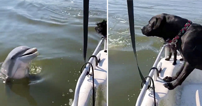 Adorable Dogs Can't Stop Barking At Friendly Dolphin In The Water!