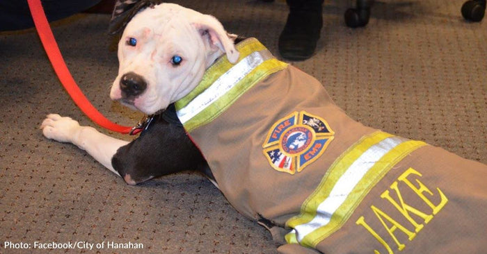 Pitbull Becomes Honorary Firefighter After Surviving Fire Hazard