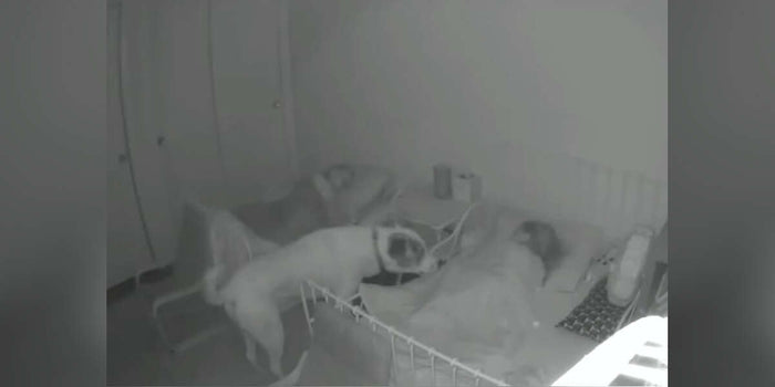 Cameras Catch A Dog Checking On His Family As They Sleep!