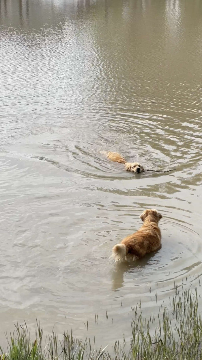How This Golden Retriever Helps Her Fearful Bestie Play Fetch!